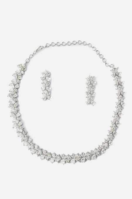 Silver Plated Crystals Cubic Zirconia Floral Choker And Earrings Set