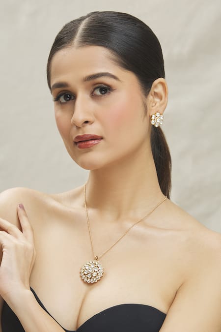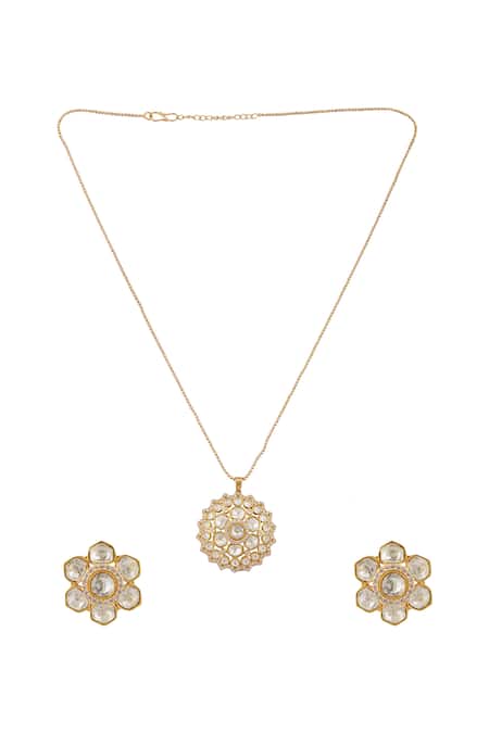 Gold Plated Stones Floral Kundan Pendant Necklace Set