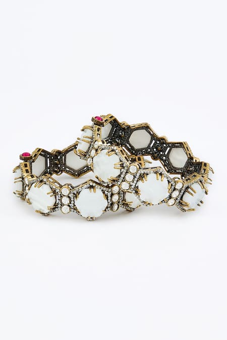 Gold and white designer bangles embellished with Kundan and Polki stones