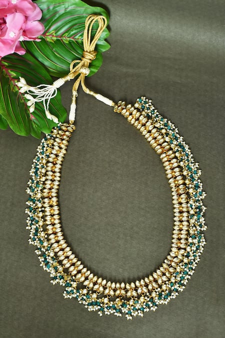 Buy_Vivinia By Vidhi Mehra_Gold Kundan Navratna Stone And Pearl Drop Necklace _Online_at_Aza_Fashions