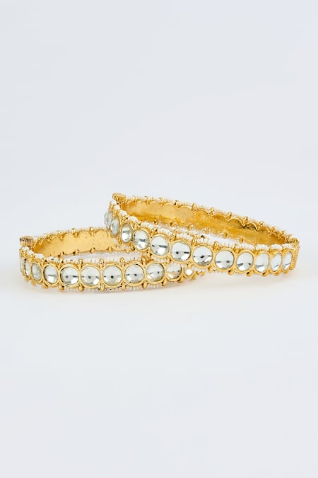 Gold Plated Imitation Diamonds Kundan Polki Embellished Bangles