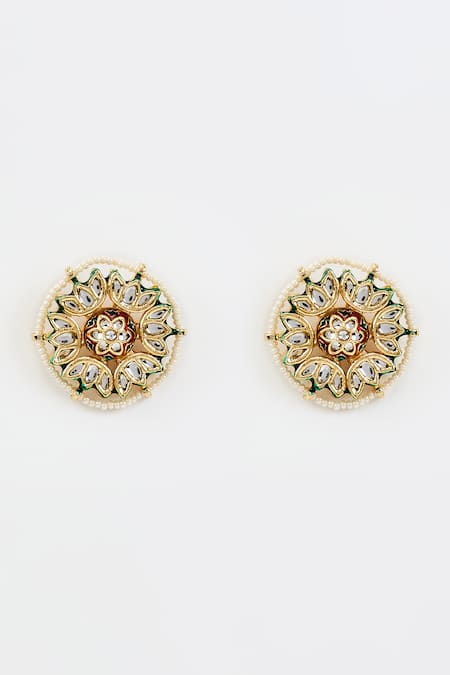 Gold plated earrings with white kundan, polki embellishments.