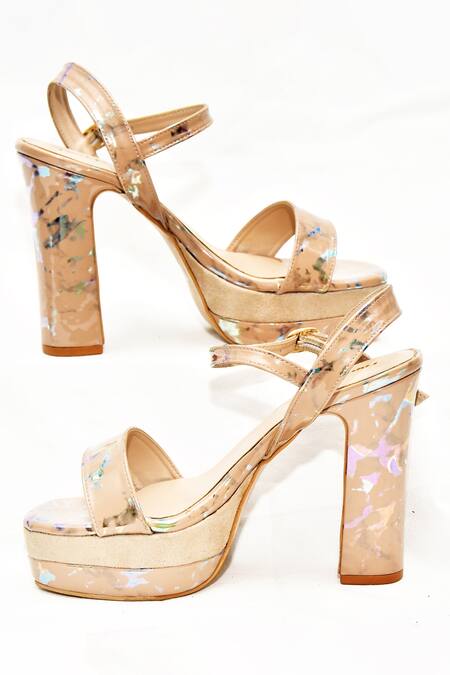 Buy_Foot Fuel_Beige Vork Abstract Print Block Heels _Online_at_Aza_Fashions