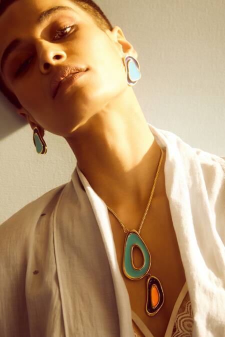 Sea blue enamel detailing, Lobster clasp closure, Handmade craftsmanship