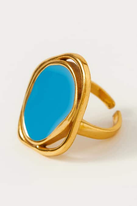 Blue Embroidery Copacabana Abstract Pattern Enameled Ring