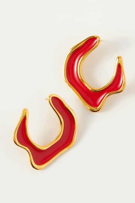 Abstract hoop shape with red sea enamel detailing, 18k gold plating for durability, Lightweight design at 24 grams