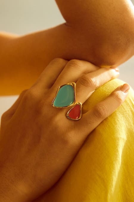 Blue Embroidery Ipanema Abstract Shaped Enameled Ring