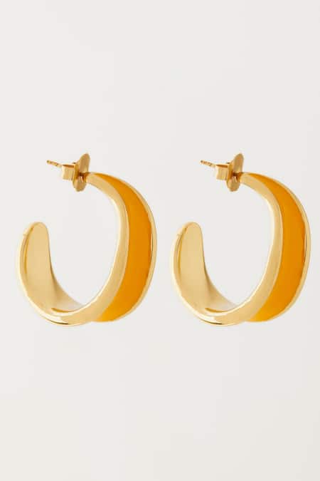 Abstract shaped semi-hoop earrings featuring sunrise yellow enameling