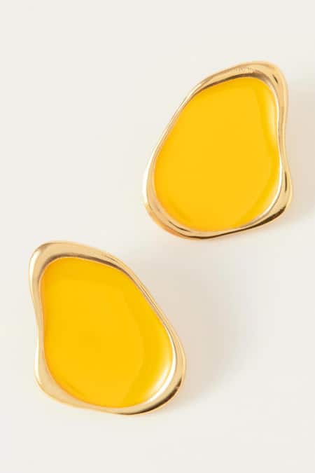 Sunrise yellow stud earrings featuring an abstract shape with enamel detailing