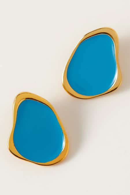 18k gold plating with a glossy finish, Abstract shape with smooth edges, Pacific blue enamel detailing