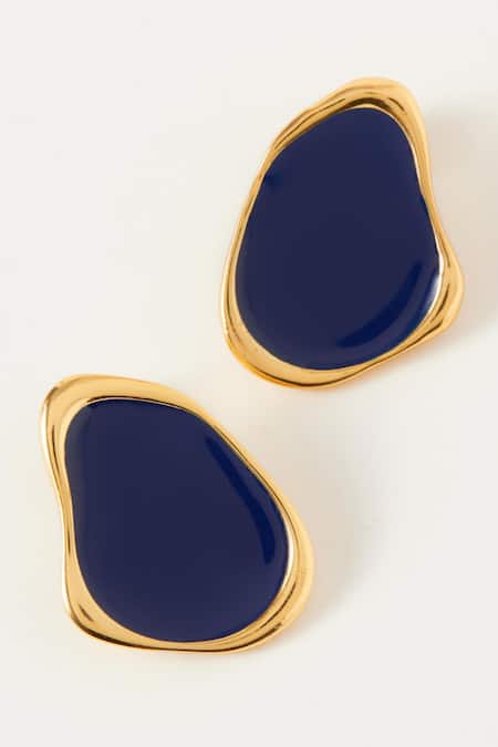Midnight blue enamel detailing, Abstract shape design, 18k gold plating