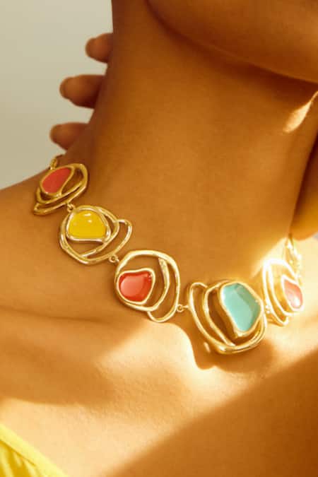 18k gold plated circlet coil shaped necklace featuring multi color enamelled detailing
