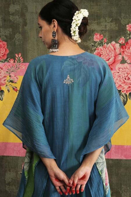 Blue Handwoven Chanderi Silk V Neck Sandli Firoz Asma Kaftan