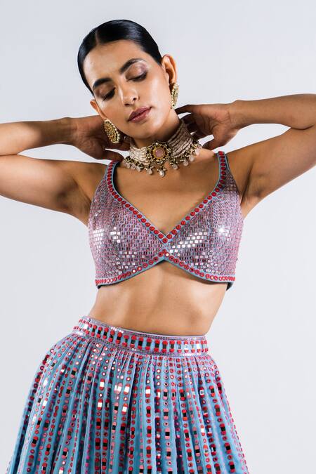 Blue Georgette, Satin, Organza Sequins, Mirrors, Embroidery Ice Lehenga Set