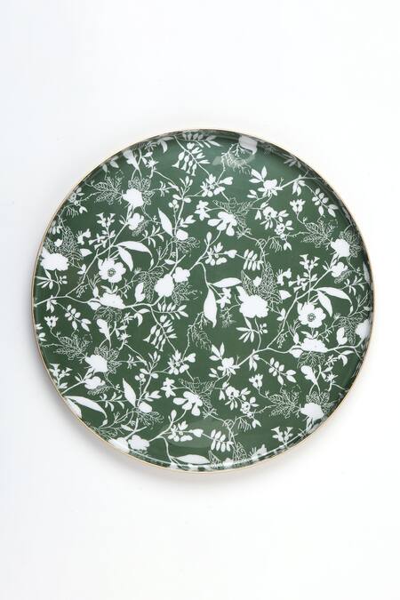 Dimensions L x B (in inches):, Small: 14 dia x 1.5, Large: 16 dia x 1.5, Weight (in gms): 3000, Volumetric Weight L x B x H (in cm): 46 x 46 x 5, Note: Only 2 green and white floral pattern trays are being sold