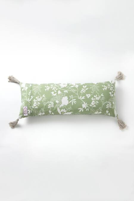 Beige Shell 30% Silk 70% Cottonfiller Fibre Fill Print Floral Lumbar Cushion
