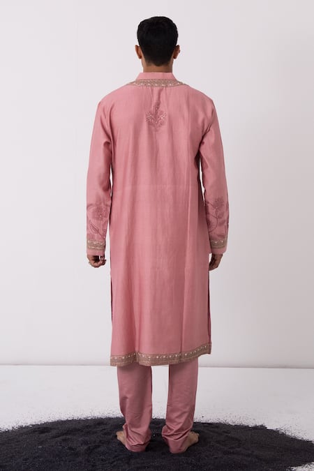 Old rose chanderi kurta with floral, leaf, aari, sequin, cutdana, bead embroidery. Paired with pant.