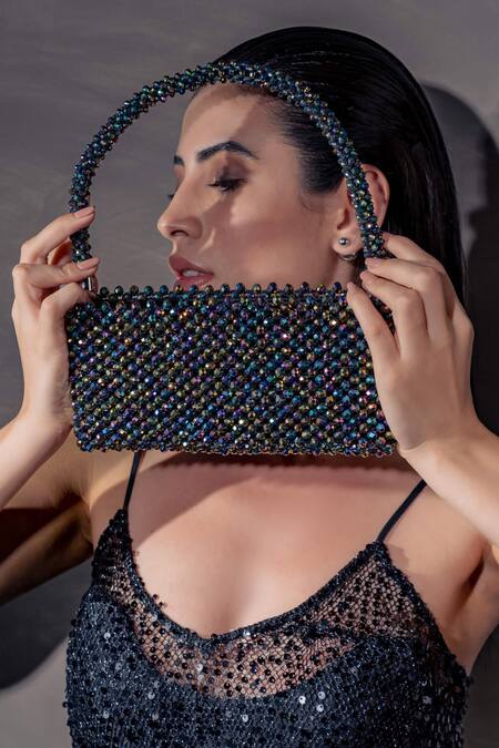 Multi Color Embellished Holographic Crystal Bead Bag