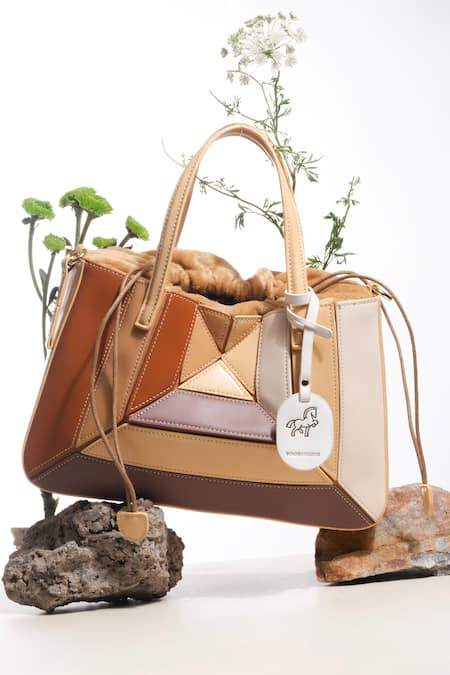 Prism maze design with contrasting color panels, Adjustable and detachable crossbody strap