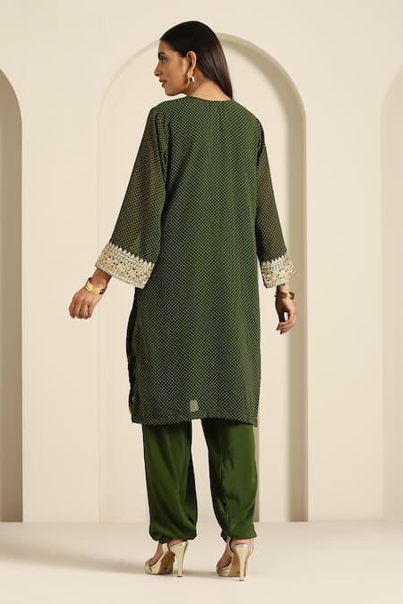 Buy_Wazir C_Green Crepe, Georgette Embroidery Split V-neck Paisley Tilla Kurta Pant Set