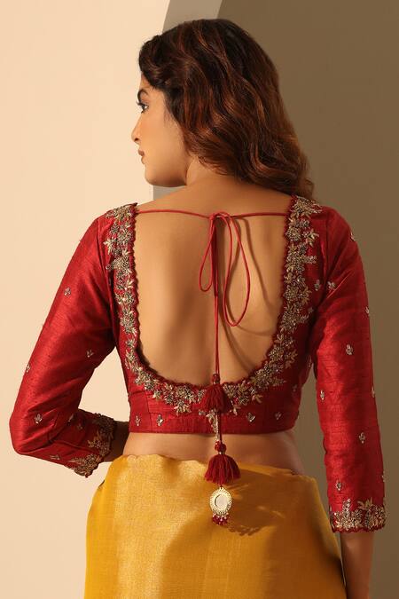 Buy_Weaver Story_Maroon Silk Beads Round Neck Hand Embroidered Blouse _Online_at_Aza_Fashions