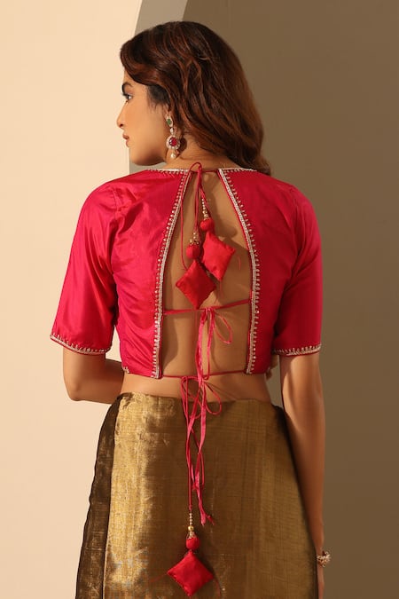 Red Silk Embroidery V-neck Bengaluru Blouse