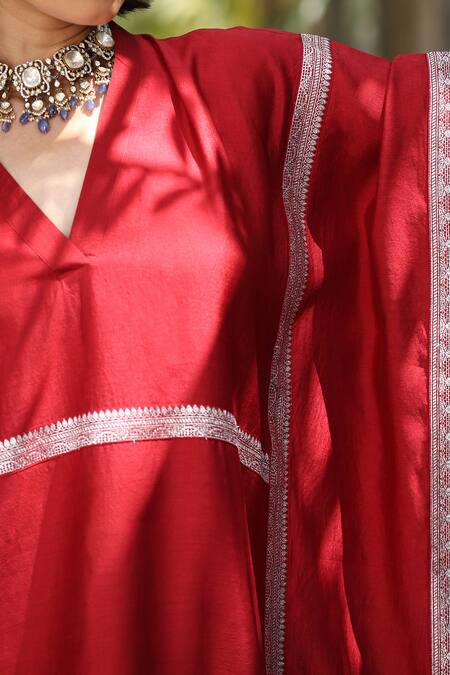 Buy_Weaver Story_Maroon Handloom Cotton Embroidery V-neck Sanjaab Bloom Border Pure Silk Kaftan _Online_at_Aza_Fashions