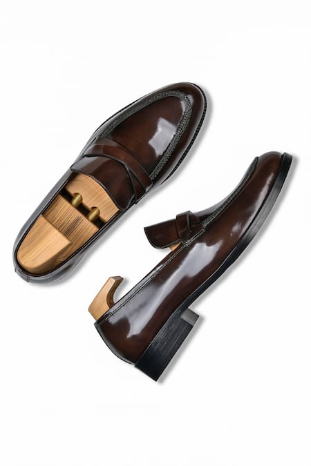 Brown loafers crafted in brushoff leather with a glossy sleek finish