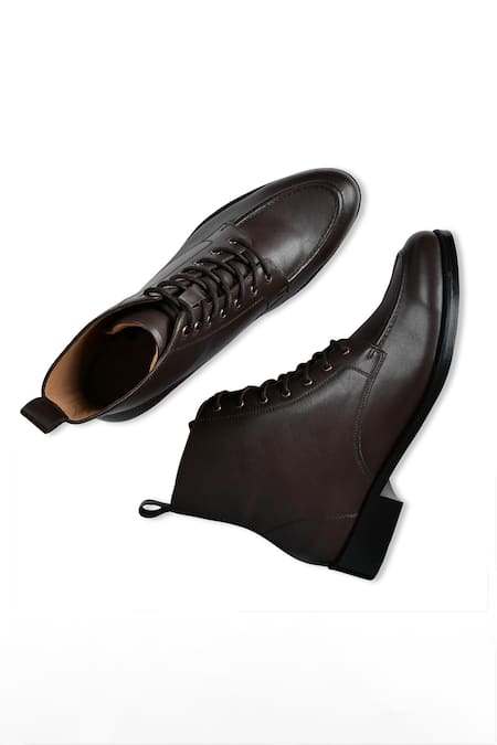 Brown mid top boots crafted from genuine leather featuring a lace tie-up design