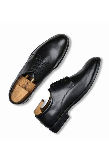 Black Derby Wide Genuine Leather Lace Up Shoes