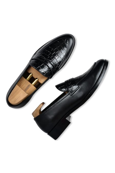 Buy_Wednesday Lifestyle_Black George Appron Croc Leather Penny Loafers _at_Aza_Fashions