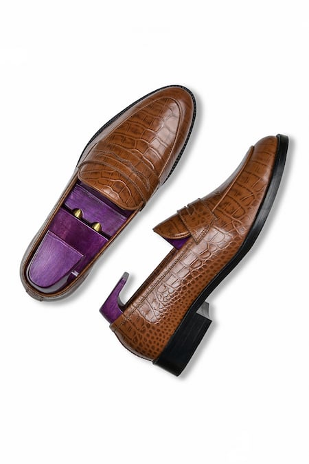 Brown George Croc Leather Penny Strap Loafers