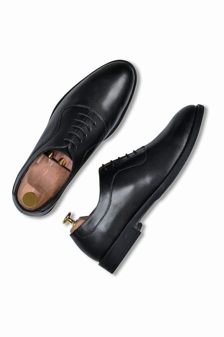 Black oxford shoes crafted from genuine leather featuring lace detailing