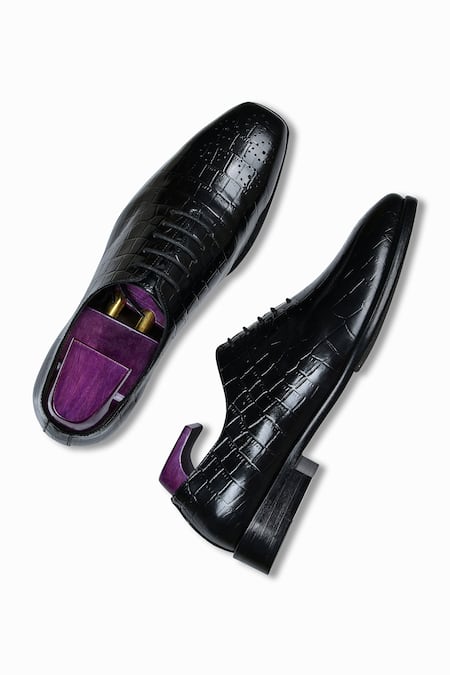 Lace detailing for a refined look, Croco leather texture adds uniqueness