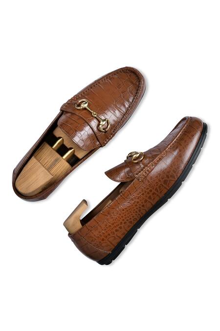 Buy_Wednesday Lifestyle_Brown Embellished Steve Textured Moccasin _at_Aza_Fashions