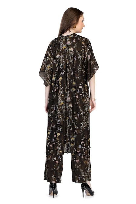 Buy_Whimsical By Shica_Black Organza, Satin Collared Floral Stroke Print Tunic And Pant Set _Online_at_Aza_Fashions