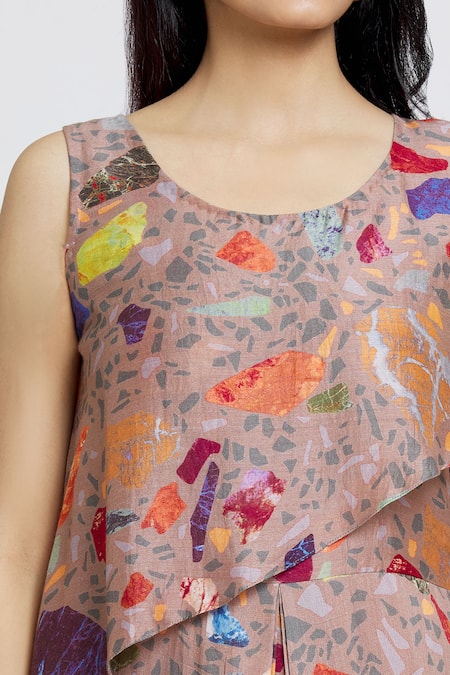 Buy_Whimsical By Shica_Brown Cotton, Silk Round Neck Draped Mosaic Print Jumpsuit _at_Aza_Fashions