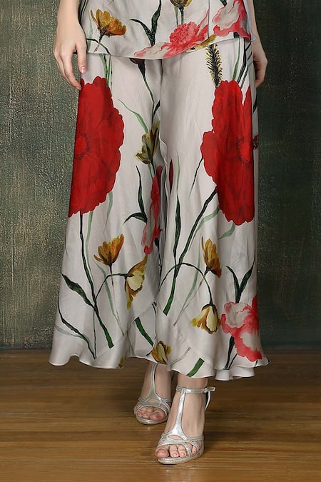 Green Organza, Satin Beads, Embroidery V-neck Flower Bloom Print Top With Pant