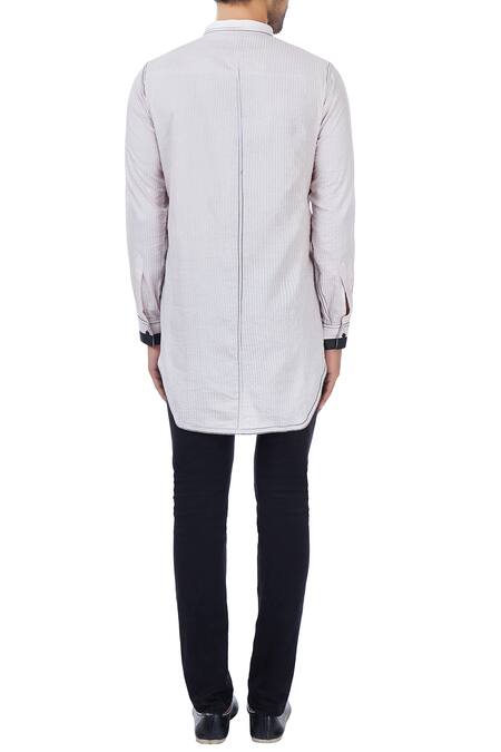 Buy_Bhusattva_White And Black Organic Silk Collar Shirt_at_Aza_Fashions