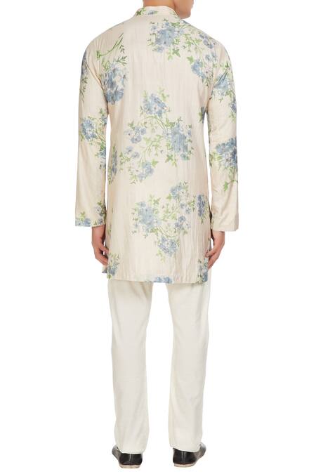 Ivory kurta with printed floral motifs. Comes with pant.
