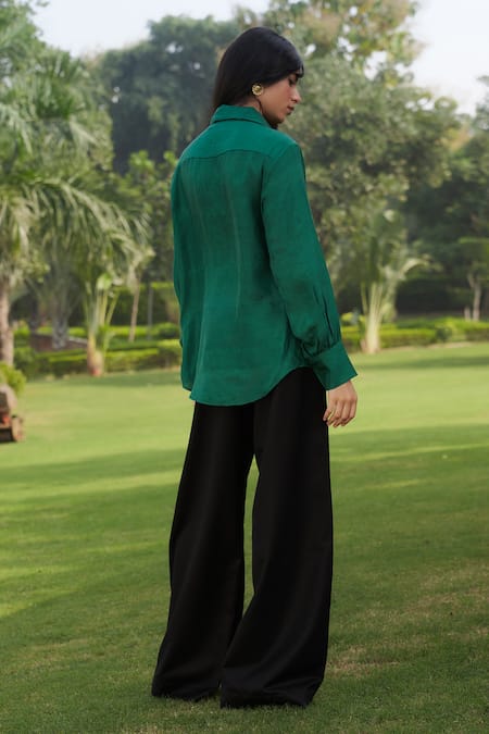 Buy_Ode To Odd_Black Cotton Blend Plain Wide Legged Trousers _at_Aza_Fashions