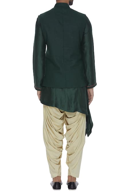 Buy_Aqube By Amber_Green Suiting Embroidered Floral Wool Bundi Jacket_Online_at_Aza_Fashions