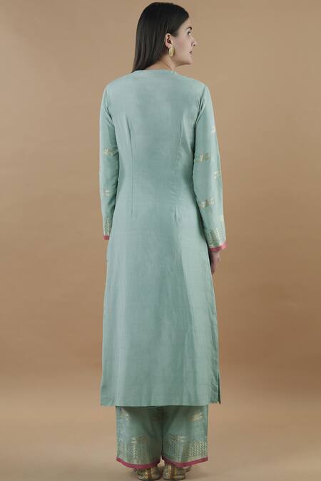 Green Woven Kurta Set
