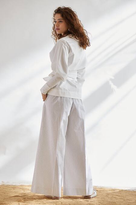 White Cotton Poplin V Neck Wrap Top With Tie-up