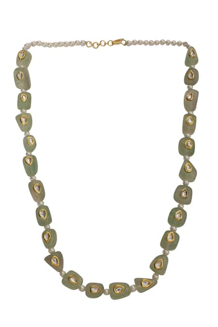 Buy_Xago_Green Le Adina Quartz And Kundan Embellished Long Necklace _at_Aza_Fashions