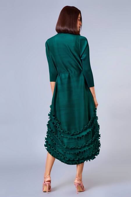 Shop_Scarlet Sage_Green Polyester Xenia Ruffle Dress_at_Aza_Fashions