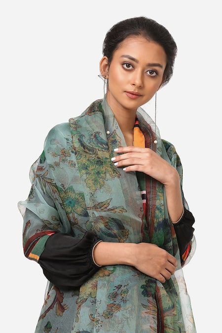 Blue Silk Organza Printed Dupatta