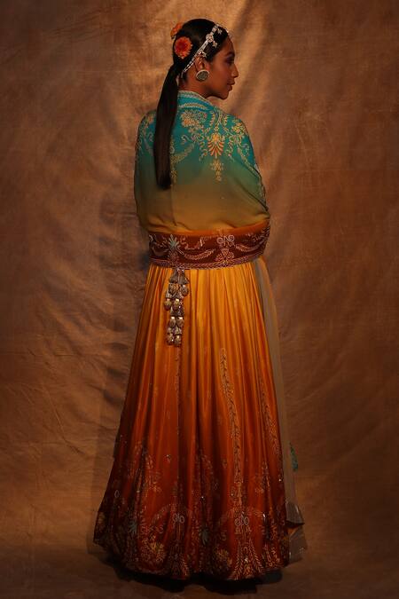 Floral print dupatta, Ombre anarkali, Resham, pearls embroidery, Note:, The hand accessory worn by the model is not for sale