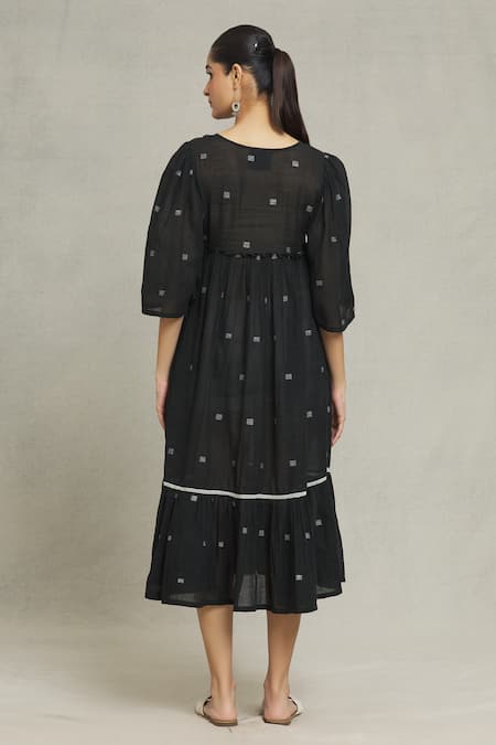 Black Jacquard Keyhole Neck Bella Geometric Print Dress