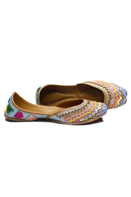 Blue Eleanor Chevron Embroidered Juttis